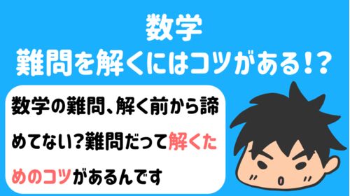 こんにちは!大阪でStudyHacksという塾を経営している迫先生です。 受験生で数学を苦手としている人は多くいます。 「簡単な問題なら公式を当てはめて解けるけど少しひねった問題になるとどうにも解法が思いつかない、、、」 「自分は理系じゃないし数学は苦…